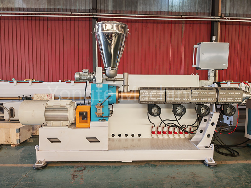 (1) Ekstruder, geri dönüştürülmüş kauçuk tozu ve PE granül karışımlarının işlenmesi için özel olarak tasarlanmıştır.