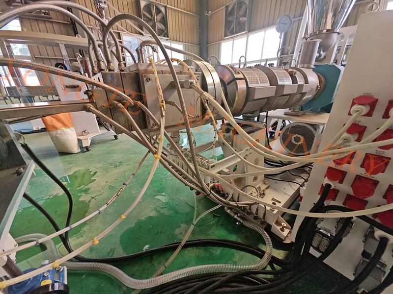 Qingdao Yongte Plastik Makineler yakın zamanda yeni nesil ahşap plastik zemin üretim hattının deneme çalışmasını başarıyla tamamladı. Bu kez başarıyla test edilen ahşap plastik zemin üretim hattı, Yongte plastik makineleri tarafından iki yıllık araştırma ve geliştirmenin sonucudur. Geleneksel ahşap plastik ekstrüzyonda düzensiz malzeme dispersiyonu ve ciddi ekipman aşınması gibi endüstri ağrı noktaları göz önüne alındığında, iki aşamalı birlikte karıştırma ekstrüzyon sistemi yenilikçi bir şekilde oluşturulmuştur. Sistemin ön ucu, malzemelerin ilk karıştırılmasında% 92 homojenlik elde etmek için atık plastik parçacıkları ve ahşap fiber hammaddeleri önceden dağıtabilen etkili bir sürekli iç karıştırıcı ile donatılmıştır; φ75/156 paralel ikiz vidalı ana makinenin arka ucu, eriyik plastikleştirme aşamasında malzemelerin derin bir şekilde karışmasını sağlamak için modüler bir yapı taş vidalı vidalı yapı ile birlikte 48: 1 ultra uzun çaplı bir oran tasarımı kullanır ve son olarak endüstri ortalamasını aşan ≥%98 dinamik bir karıştırma düzeni elde eder. Vida namlu, gelişmiş bimetalik santrifüj döküm teknolojisini benimser ve alaşım çelik matrisinde tungsten karbür aşınmaya dayanıklı bir katman birleştirilir. Yüzey sertliği HRC65-70'e ulaşır. Üçüncü taraf bir organizasyonun testine göre, aşınma direnci katsayısı geleneksel nitrided malzemelerinkinden 3 kat daha yüksektir. Sürekli çalışma koşulları altında tasarlanan hizmet ömrü 8.000 saati aşar ve bu da ekipmanın çalışma ve bakım maliyetlerini önemli ölçüde azaltır.