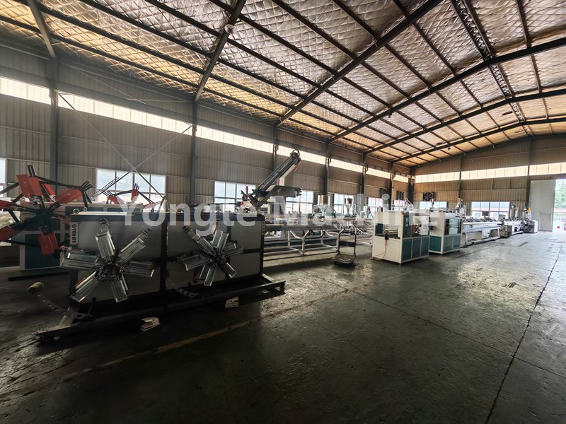 Bu PE boru makinesi 16-63 mm'lik su borusu yapmak için kullanılır; bu, otomatik besleme makinesi, yüksek etkili ekstrüzyon makinesi, yüksek hızlı kalıp, hızlı vakum kalibrasyon tankı ve su soğutma tankı, güçlü çekme cihazı, otomatik kesme makinesi ve çift istasyonlu otomatik sarıcı ile donatılmış yüksek hızlı bir makinedir.