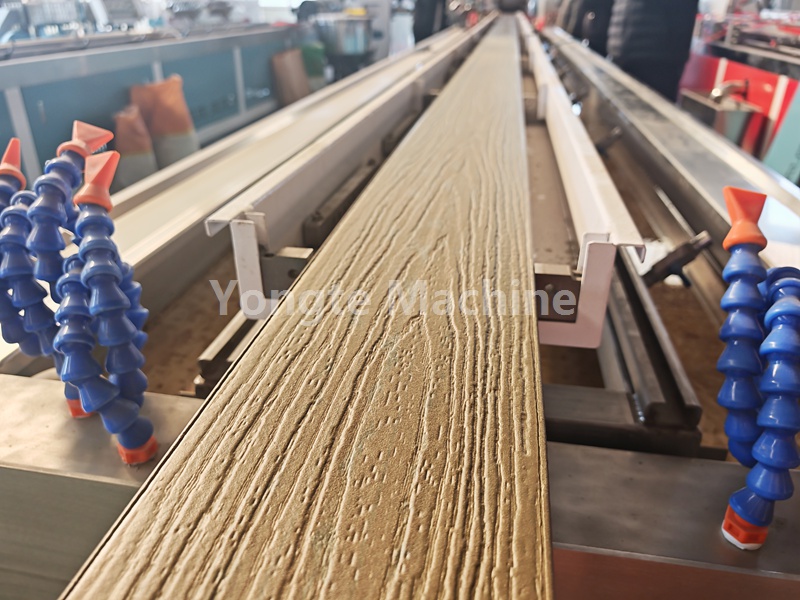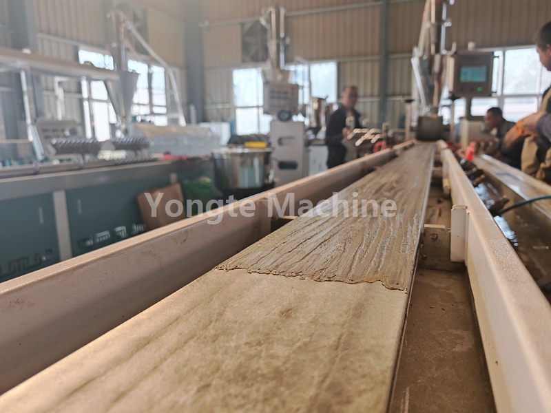 4, Birleştirilmiş malzemenin konik çift vidalı ekstruder ve özel tasarlanmış WPC zemin kaplaması kalıbı ile ekstrüzyonu,